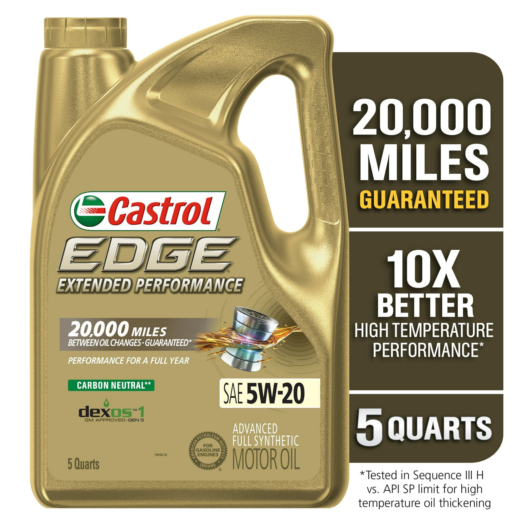 Castrol EDGE Extended Performance 5W-20 Advanced Full Synthetic Motor Oil, 5 Quarts