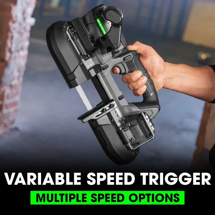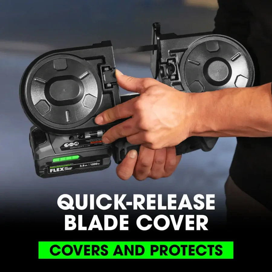 Power through conduit, rod, pipes, and strut with the FLEX 24V 2-1/2” Compact Band Saw. This powerful compact band saw is 27 percent more compact and 43 percent lighter than its larger 5-inch deep cut counterpart, making it an ideal lightweight portable band saw for plumbers and electricians needing to cut material in place while up on a ladder. Its powerful brushless motor delivers fast cutting speeds for clean, burr-free cuts and its variable speed trigger provides better control when cutting through different materials. A quick-release tool-free blade cover protects the active cutting area for added safety during use, and an LED light illuminates dark work areas. A rafter hook allows quick and easy storage from ladders, struts, and FLEX STACK PACK™ rack rails between cuts. This cordless band saw delivers the FLEX Advantage of unmatched battery power, runtime, and fast charging (battery and charger sold separately). It’s protected by the FLEX Limited Lifetime Warranty when registered within 30 days of purchase at registermyFLEX.com through December 31, 2024.